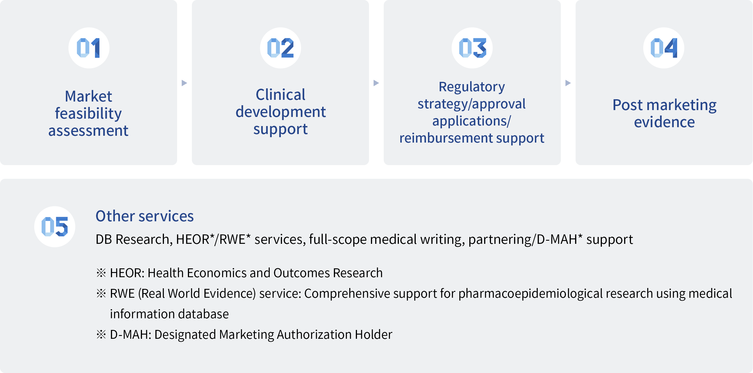 While clinical trials are often essential for obtaining regulatory approval, health economics and outcomes research (HEOR) and real‑world evidence (RWE) play a critical role in further establishing product value in the Japanese market. Our team has extensive experience in designing and conducting HEOR and RWE studies tailored to the Japanese market.