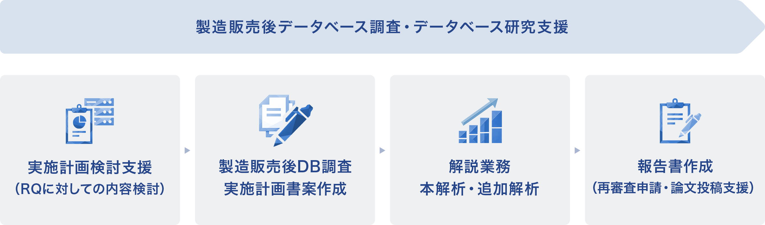 自主研究によるノウハウを蓄積してきたCROとして、データベース調査およびデータベース研究サービスを支援します。