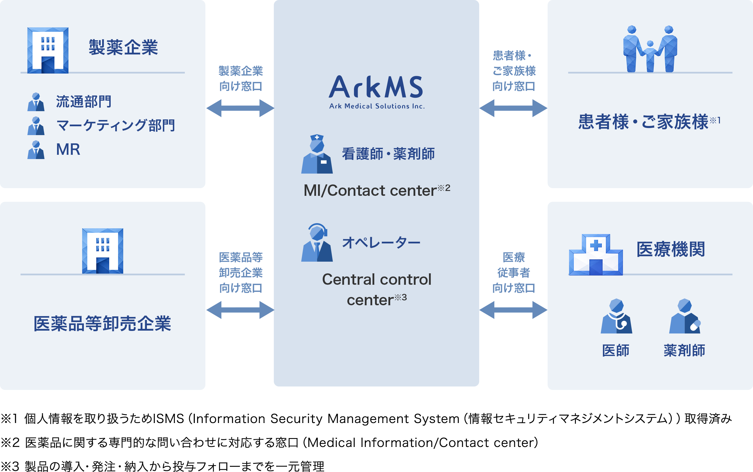 製薬企業向け窓口(流通部門・マーケティング部門・MR)